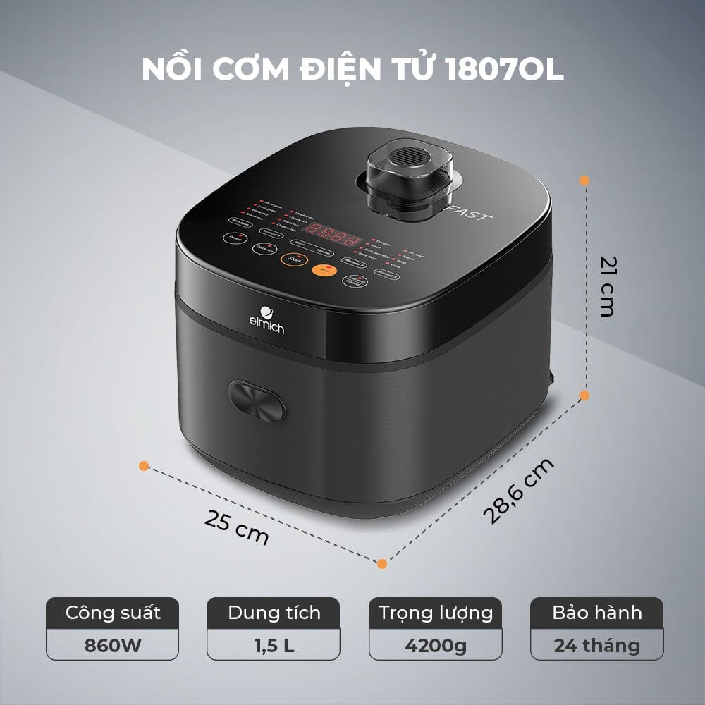 Thiết kế kiểu dáng nhỏ gọn, hiện đại, phù hợp với mọi không gian trong gia đình bạn. Nồi cơm điện tử Elmich RCE-1807 là thiết bị đáng sở hữu cho các căn bếp tiện nghi.