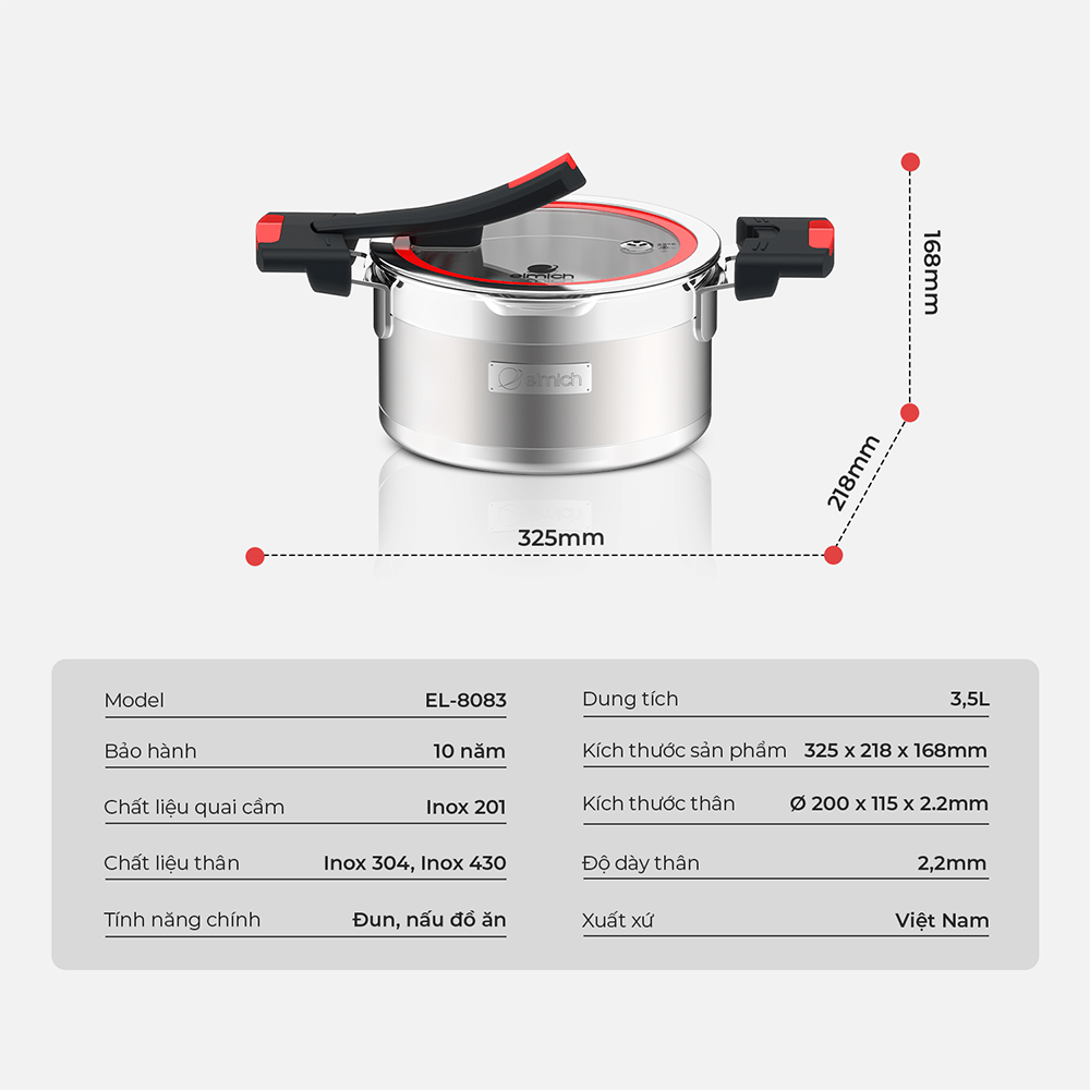 Nồi Inox liền khối Elmich Milano EL-8083 size 20cm