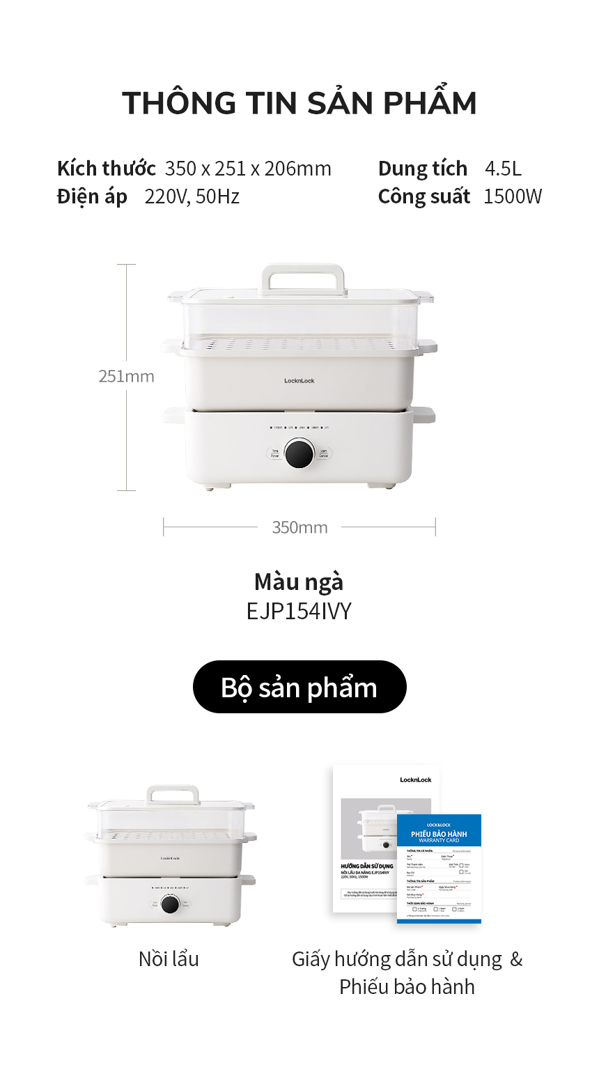 DUNG TÍCH LỚN 4.5L: Hoàn hảo cho bữa ăn gia đình. Giữ tròn vị với khay hấp tháo rời
