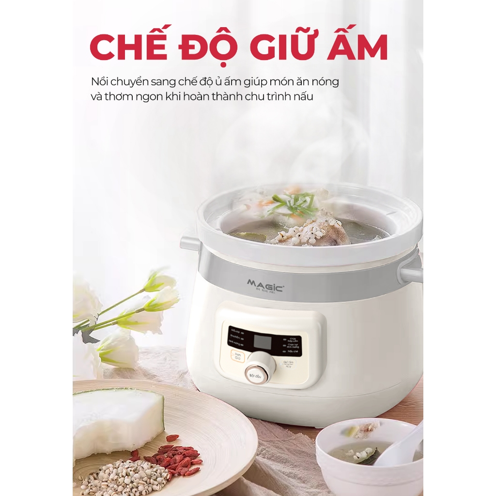 Nồi nấu chậm đa năng MAGIC A-050 A-051 2L, Hàng chính hãng, 6 chức năng nấu, chế độ giữ ấm - JoyMall