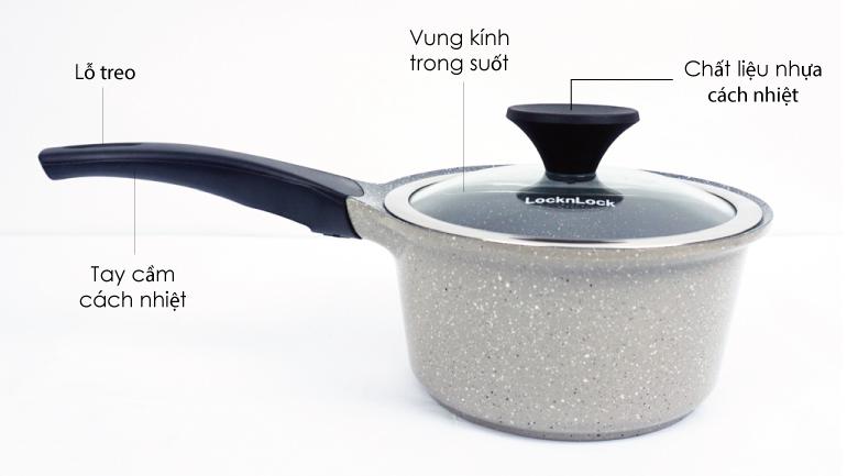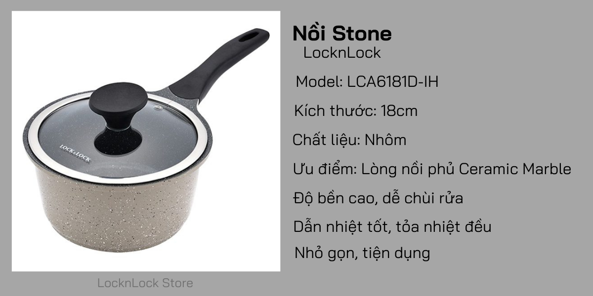 Nồi nhôm chống dính vân đá 18cm STONE LocknLock LCA6181D-IH, Hàng chính hãng, có tay cầm, dùng được nhiều bếp-JoyMall