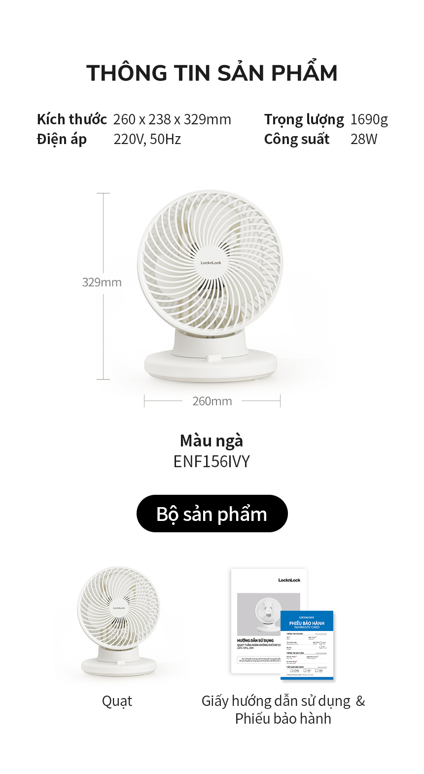 Quạt tuần hoàn không khí LocknLock Bianco ENF156IVY, Hàng chính hãng, để bàn, luồng gió đa chiều - JoyMall
