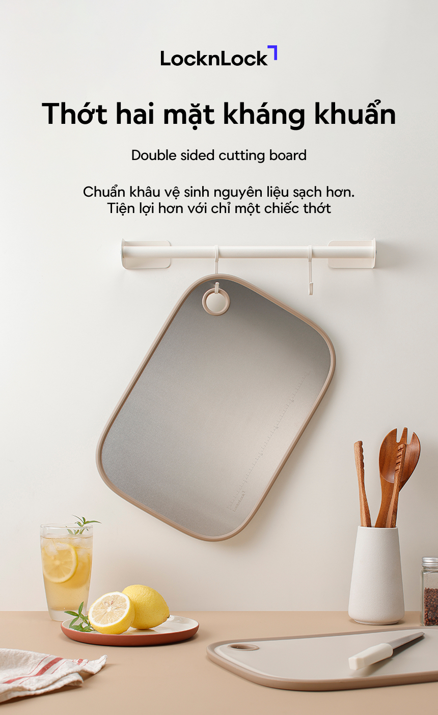 Thớt 2 Mặt Kháng Khuẩn LocknLock Double Sided Board CKD096IVY 40*28*1.2cm, Hàng Chính Hãng - JoyMall