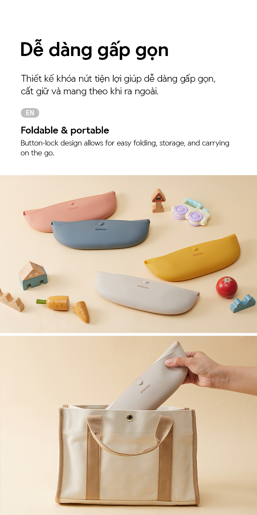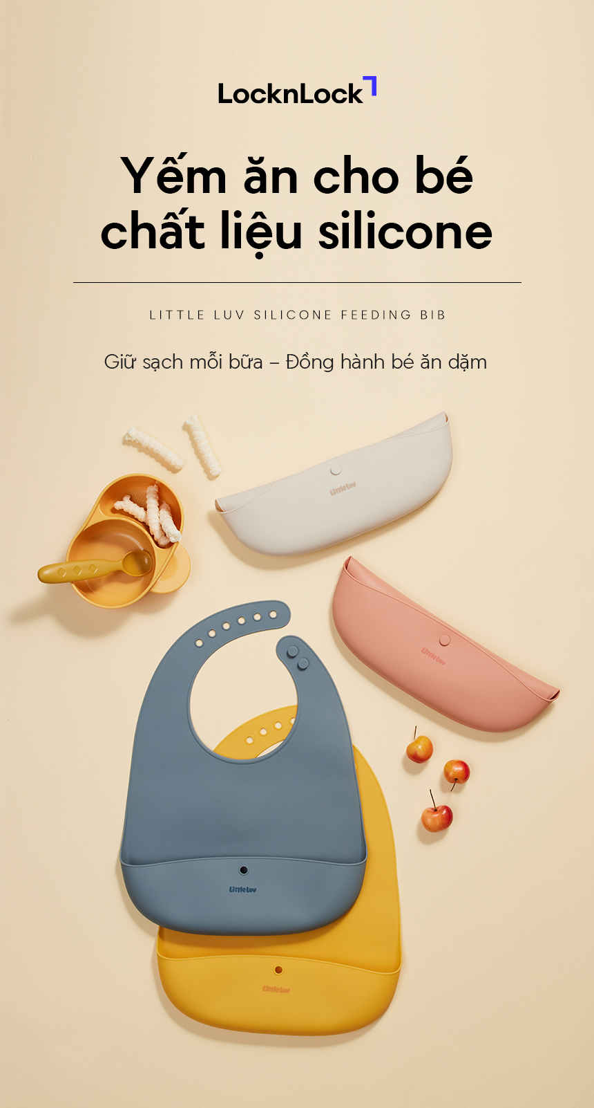 Yếm Ăn Dặm Cho Bé LocknLock Little Luv Silicone Feeding LBB430, Hàng Chính Hãng, Gấp Gọn - JoyMall